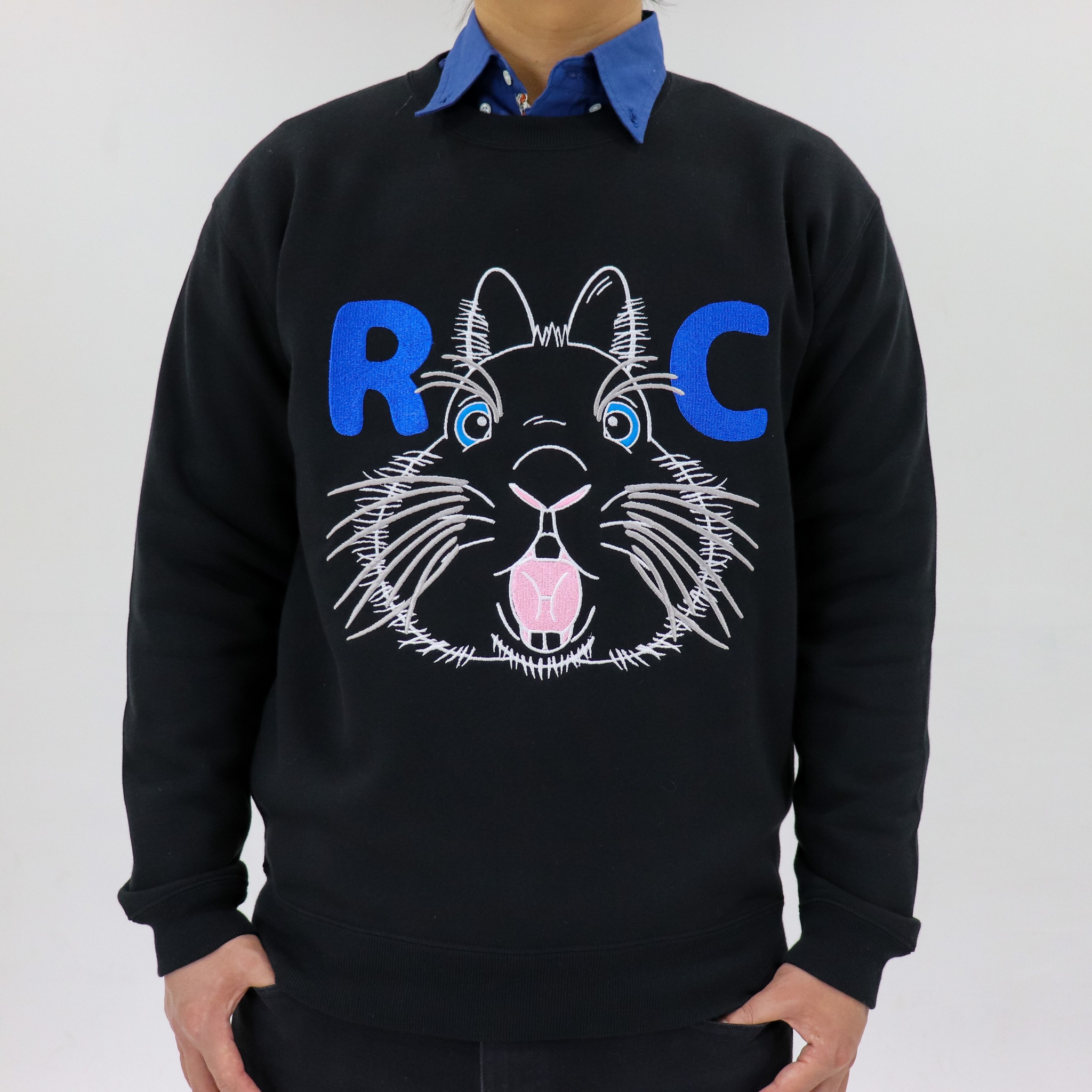 Rabbit Castle 〜うさぎのお城〜 のお店ロゴのうさぎマークが前に飛び出してきたイメージをフロントに刺繍したオリジナルスウェットトレーナーです。カラーは1種類!