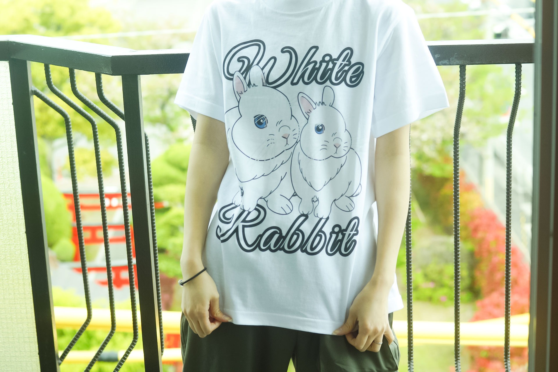 Osaka アメ村にある,うさぎカフェ・うさぎ専門店『White Rabbit』さんと,『Rabbit Castle 〜うさぎのお城〜』のオリジナルコラボTシャツです。