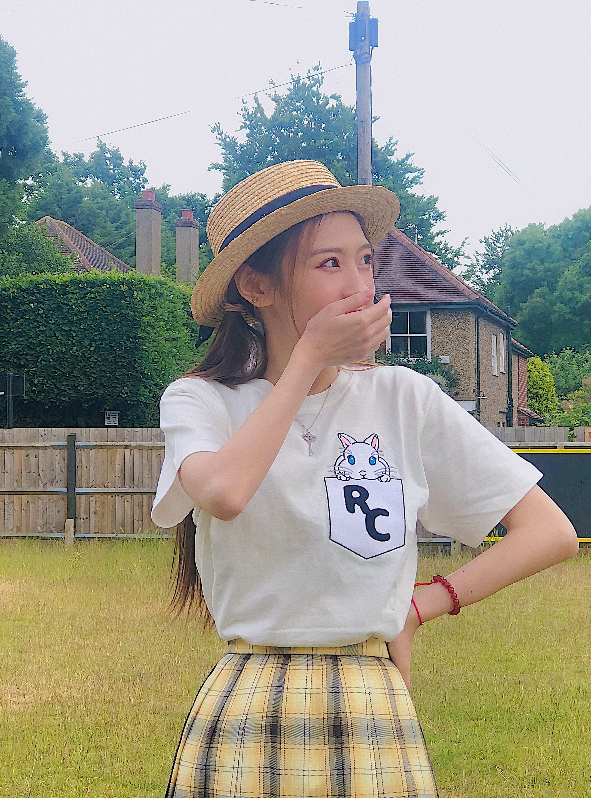 Rabbit Castle 〜うさぎのお城〜のマスコットキャラクターが,まるでポケットから覗いてる用にみえるオリジナルTシャツです。