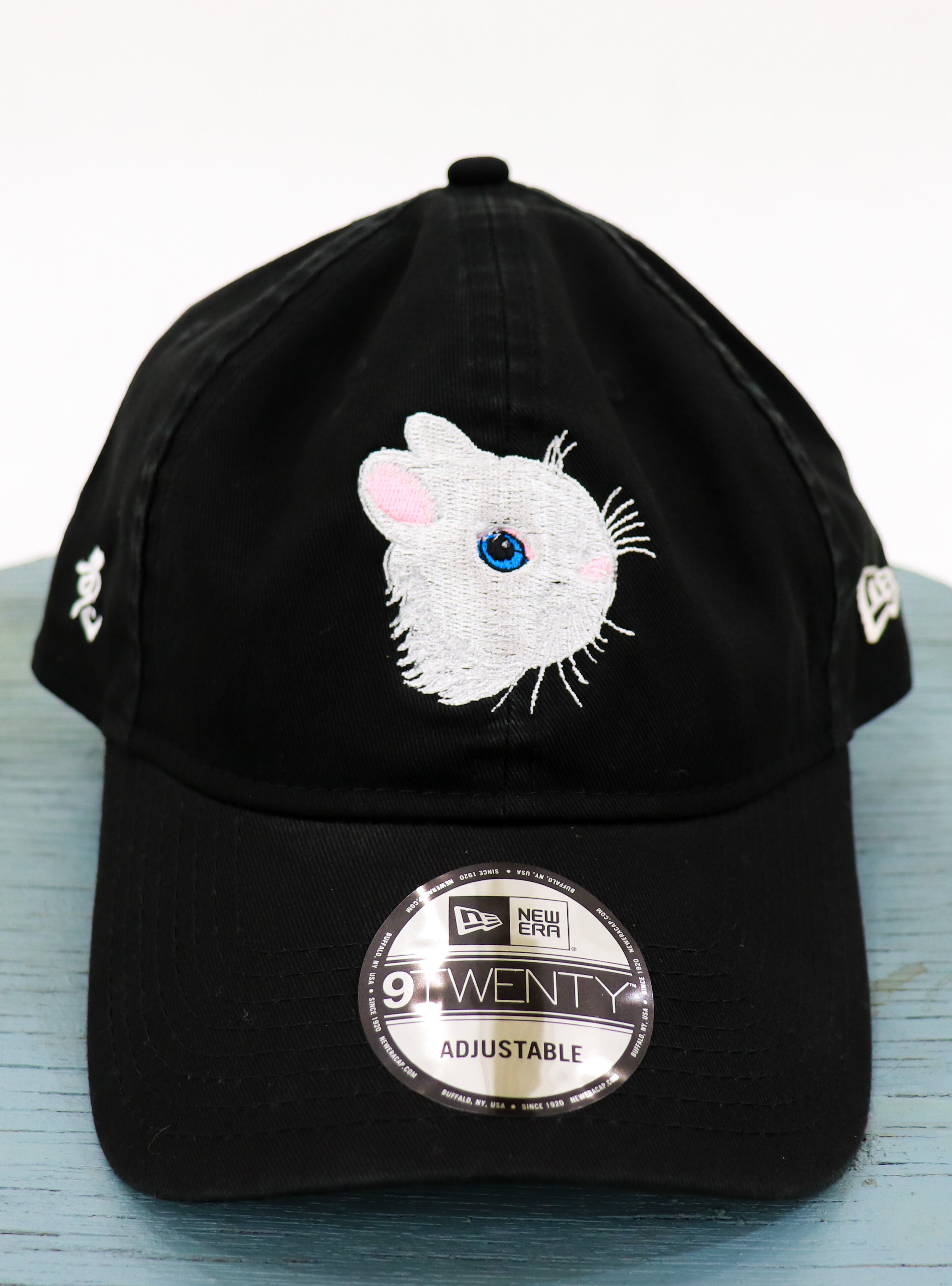 左サイドには刺繍でオリジナルの兎ロゴ,右サイドには刺繍でニューエラロゴがあります。