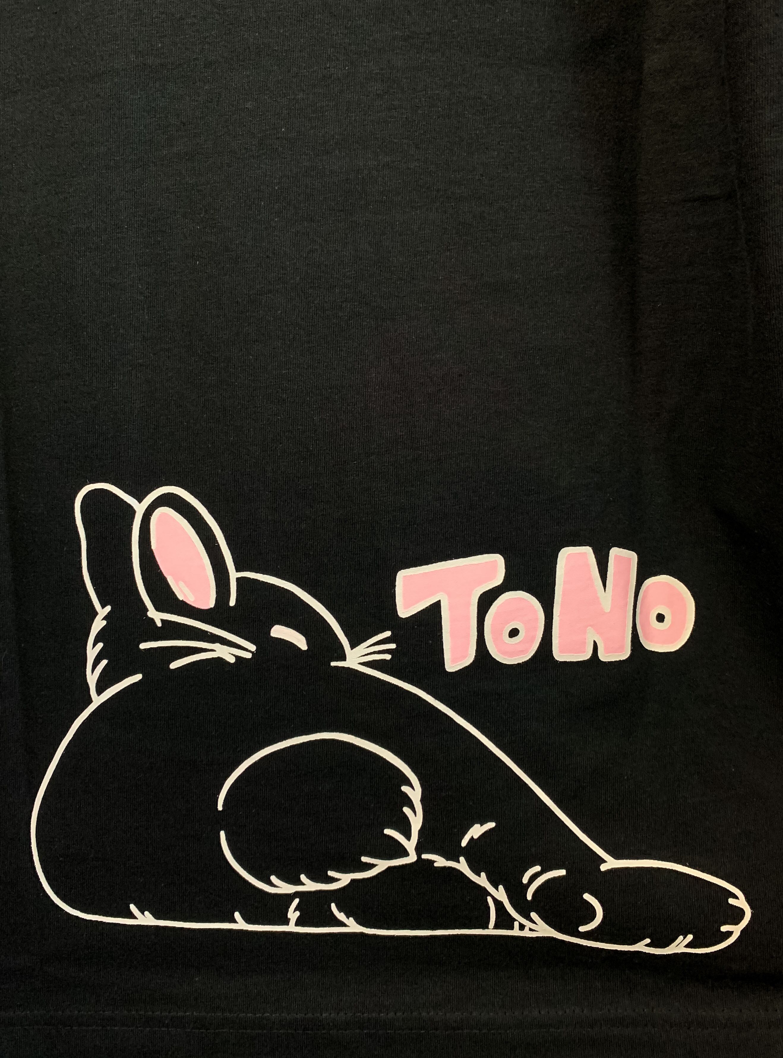 前面にシンプルにプリントされた当店のお店ロゴに,背面下に当店のマスコットキャラクターであるうさぎ(ToNo)がプリントされた,