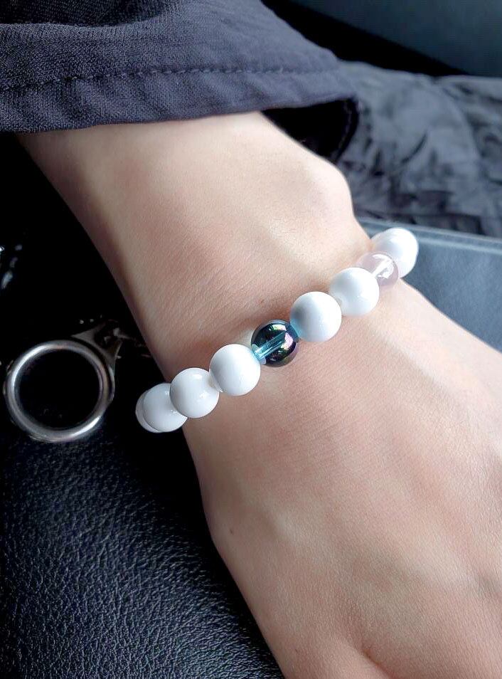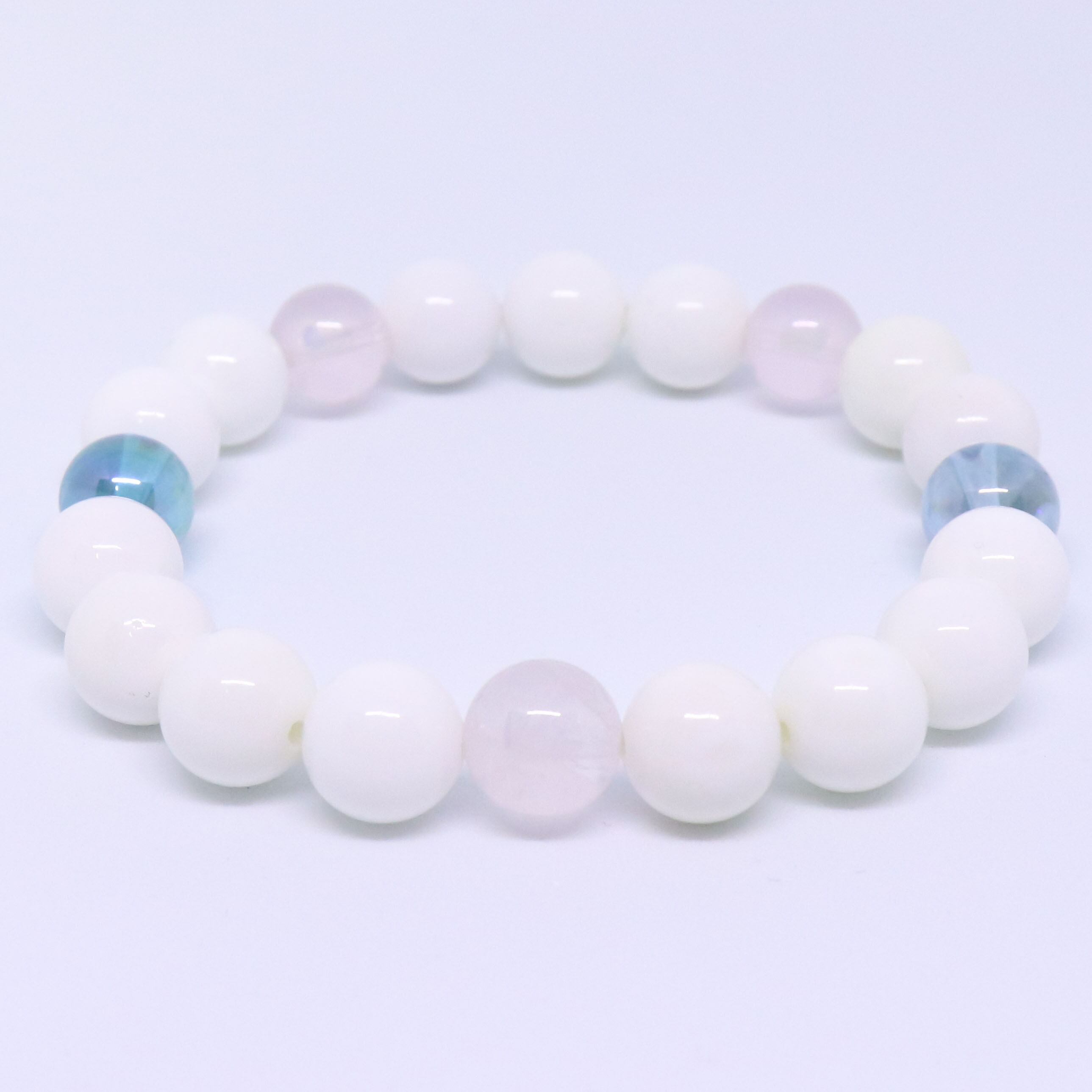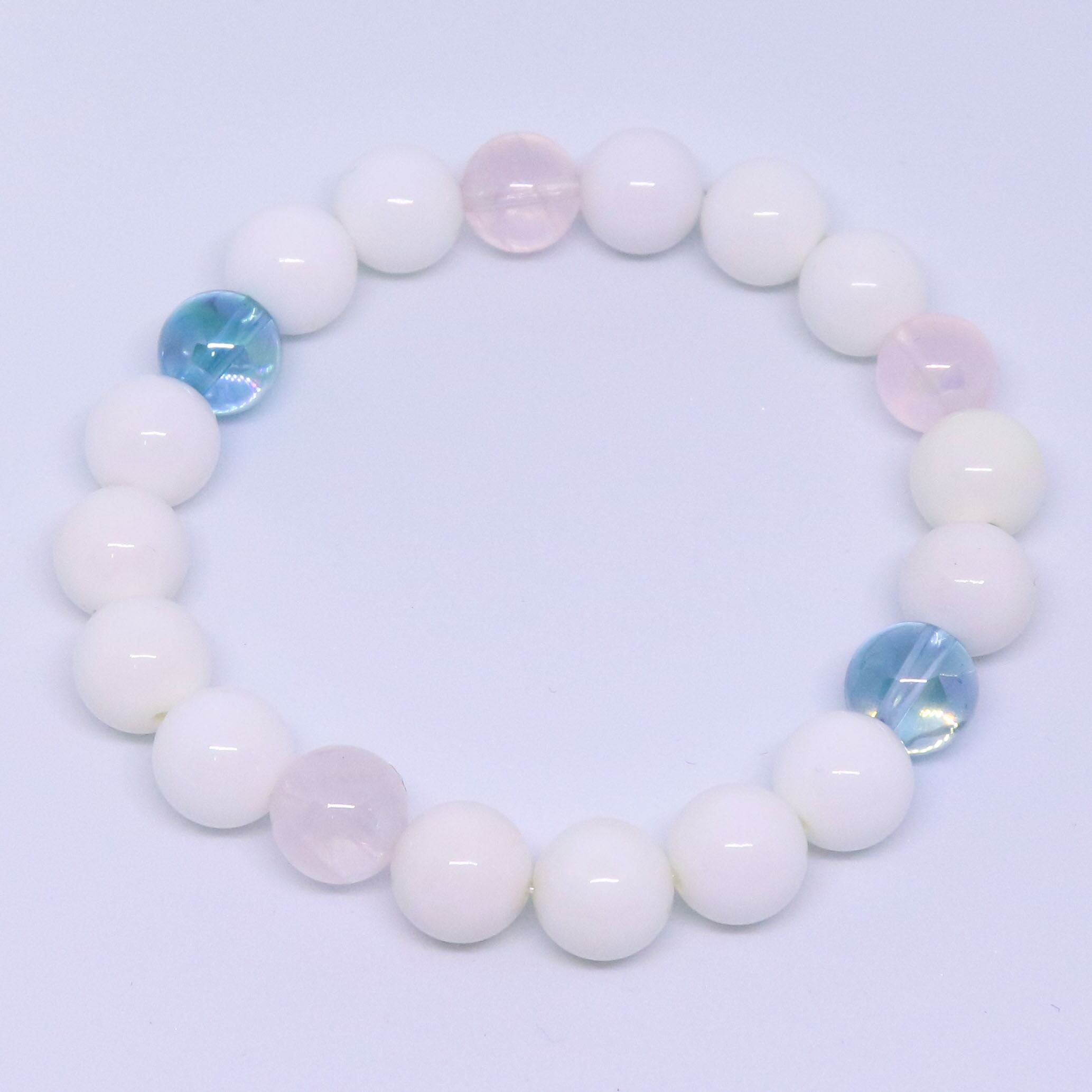Rabbit Castle 〜うさぎのお城〜 のマスコットキャラクターをイメージし,高品質な天然石を使って作ったオリジナルブレスレットとなっております。